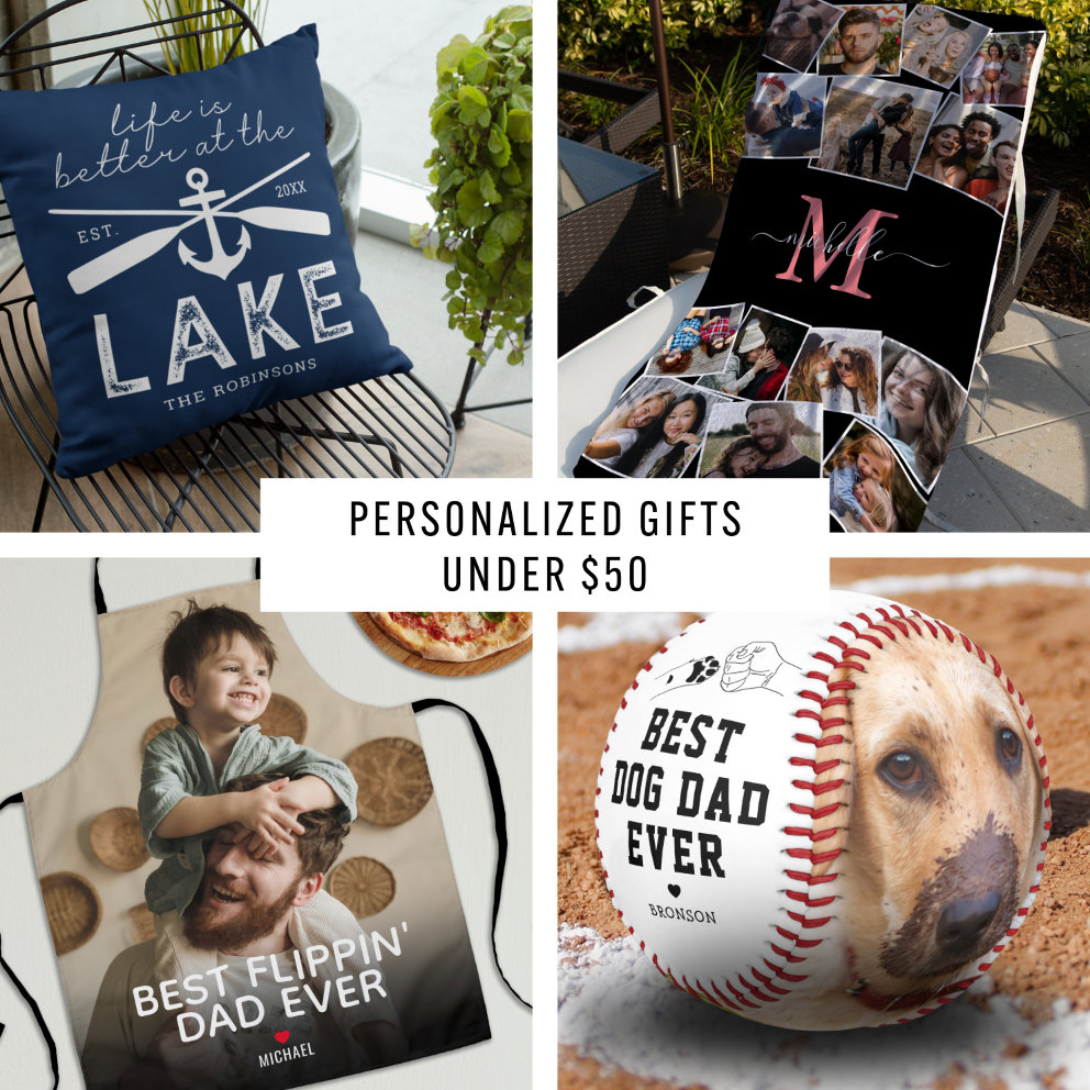 We have a range of products that are all less than $50, including pillows custom-printed with your beloved's favorite photo, aprons featuring their initials and even photo plaques to commemorate their special moments. Best of all, each of these gifts is crafted to order with the care, attention and expertise you'd expect from a higher price tag. Whether you're looking for something unique, fun or meaningful, our range of gifts offers something for everyone.