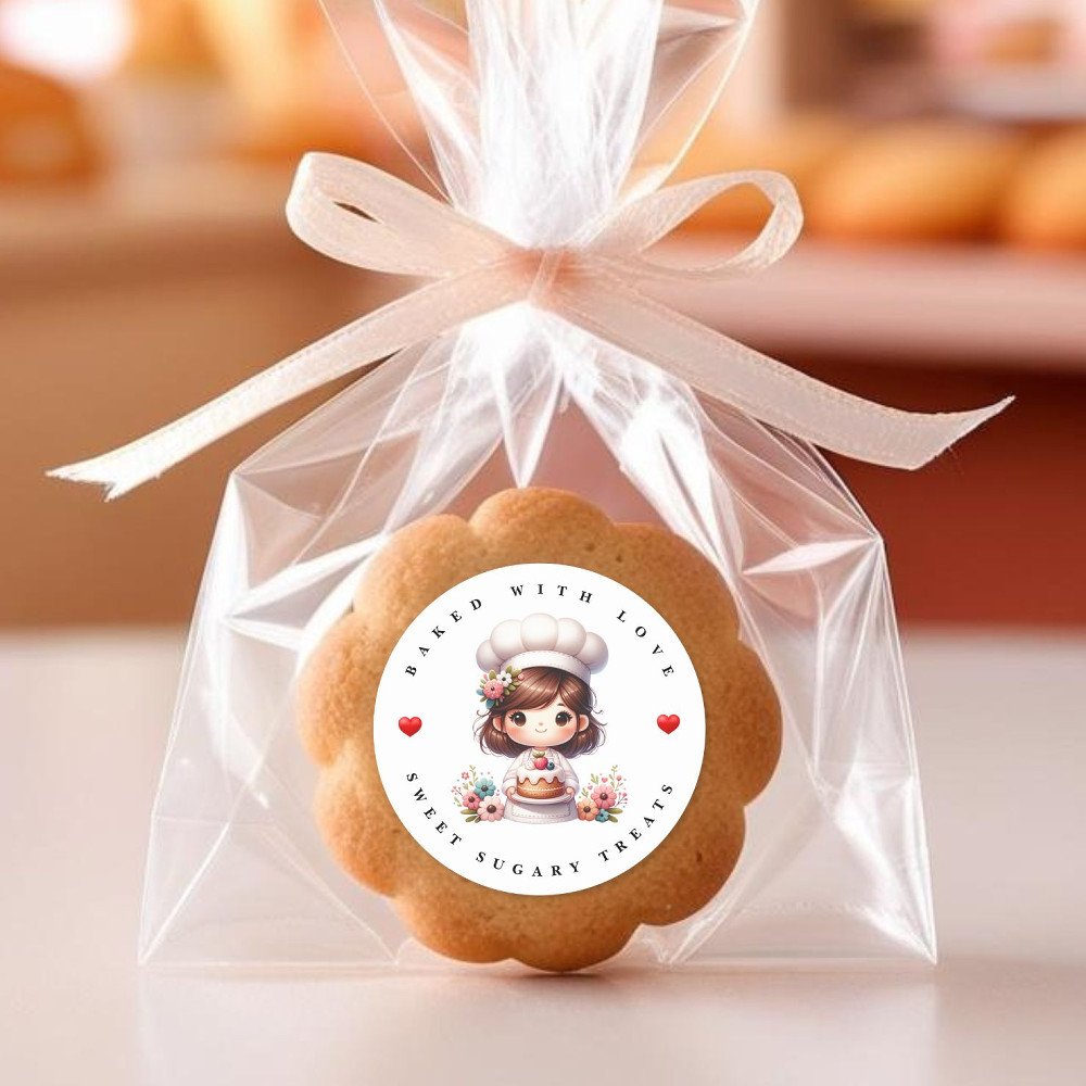 Modern bakery thank you sticker. A cute pink wooden utensil set in the middle of the sticker, thank you for supporting my small business is above it and below it is the name of the business.