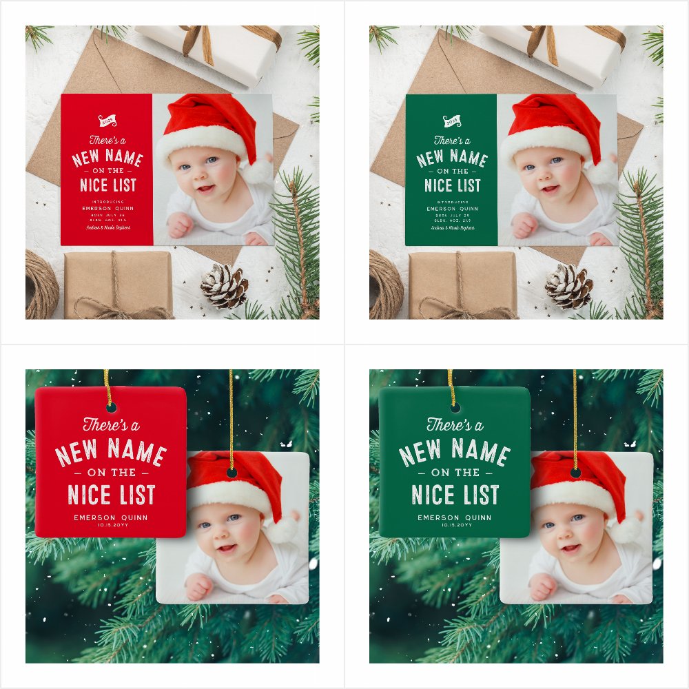 Cute baby's first Christmas collection of holiday cards, keepsake gifts and more